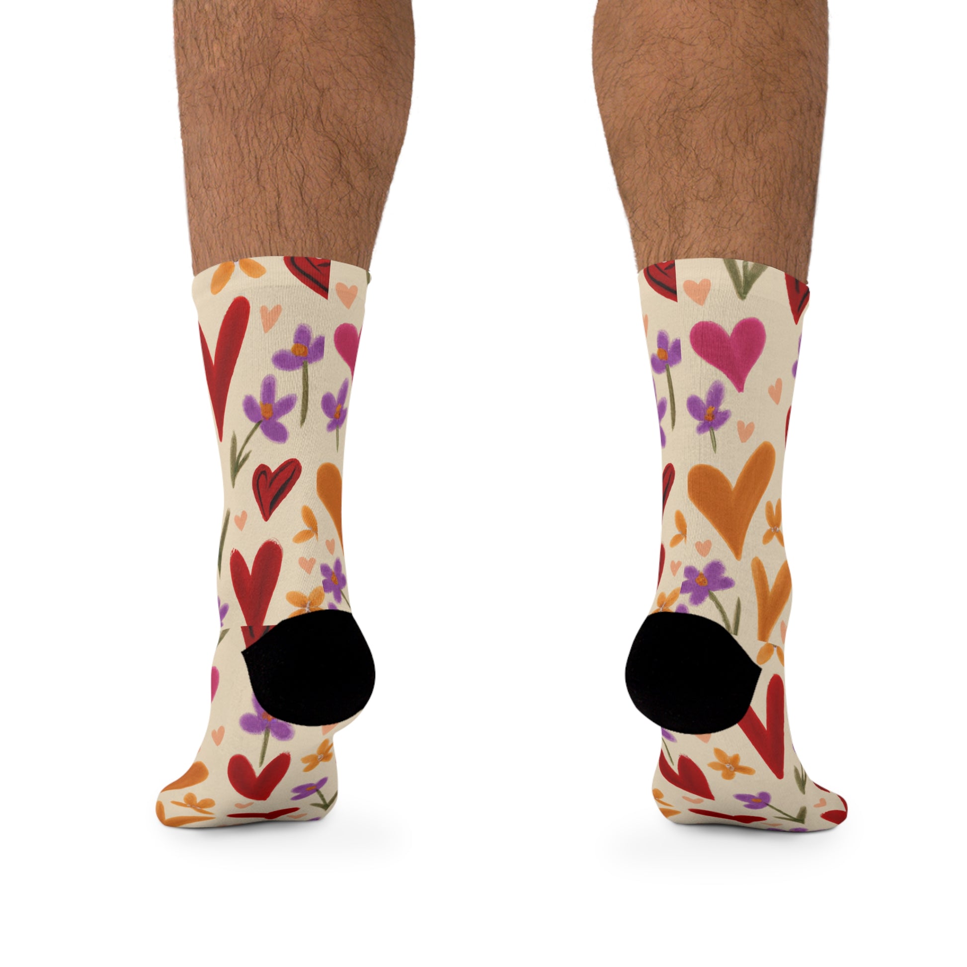 Celebrate Mother's Day in eco-friendly style with our Recycled Hearts and Flowers Socks! Crafted from recycled materials, these socks are not only kind to the environment but also bursting with love and charm.