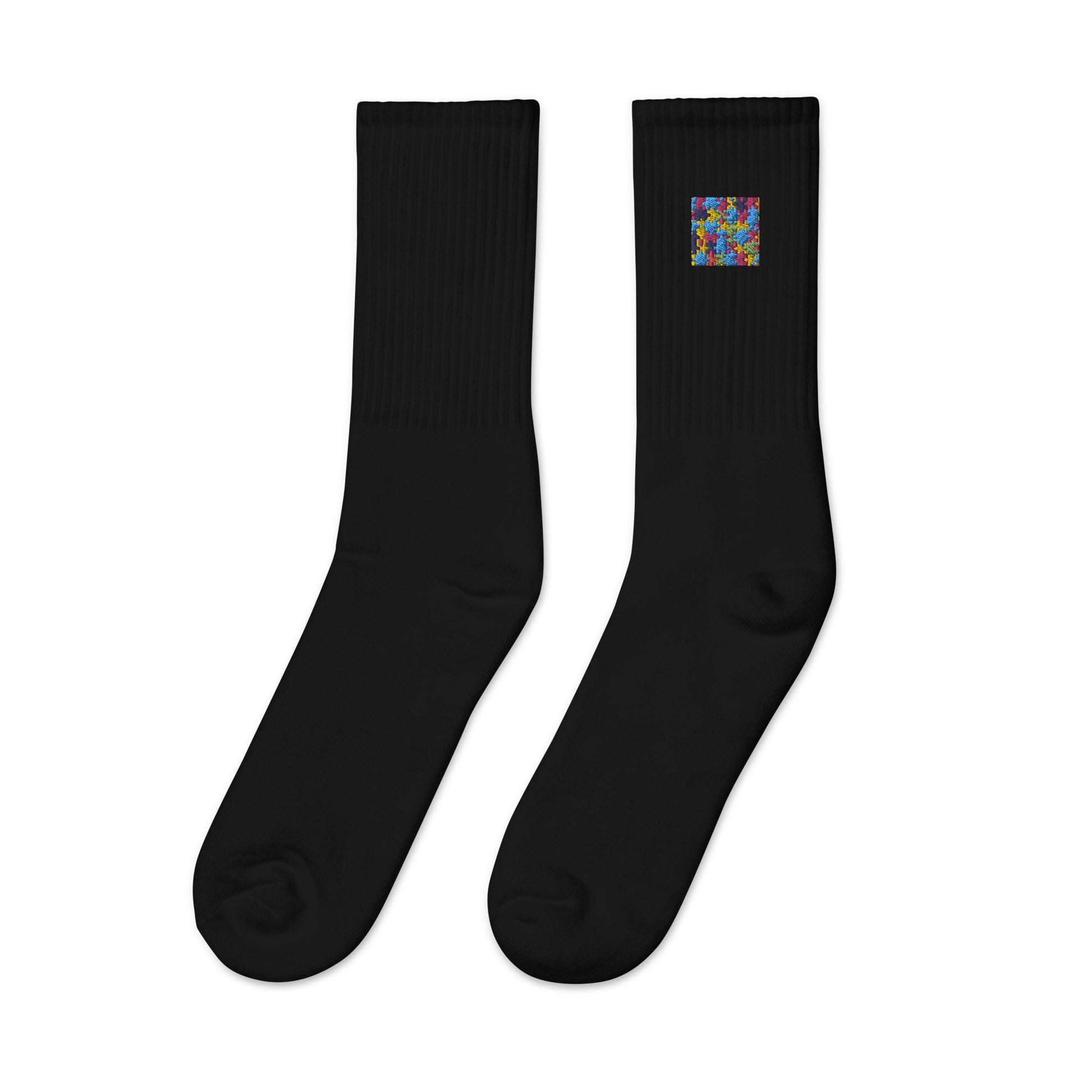 Introducing our embroidered puzzle piece socks, the perfect blend of style and significance. Crafted with meticulous attention to detail, these socks feature a beautifully stitched puzzle piece emblem, symbolizing uniqueness and interconnectedness. Made from high-quality materials, they offer both comfort and durability, making them an ideal addition to any wardrobe. Whether you're stepping out for a casual day or making a statement, these socks will add a touch of charm and meaning to your ensemble. Join the puzzle and step into style with these one-of-a-kind socks.