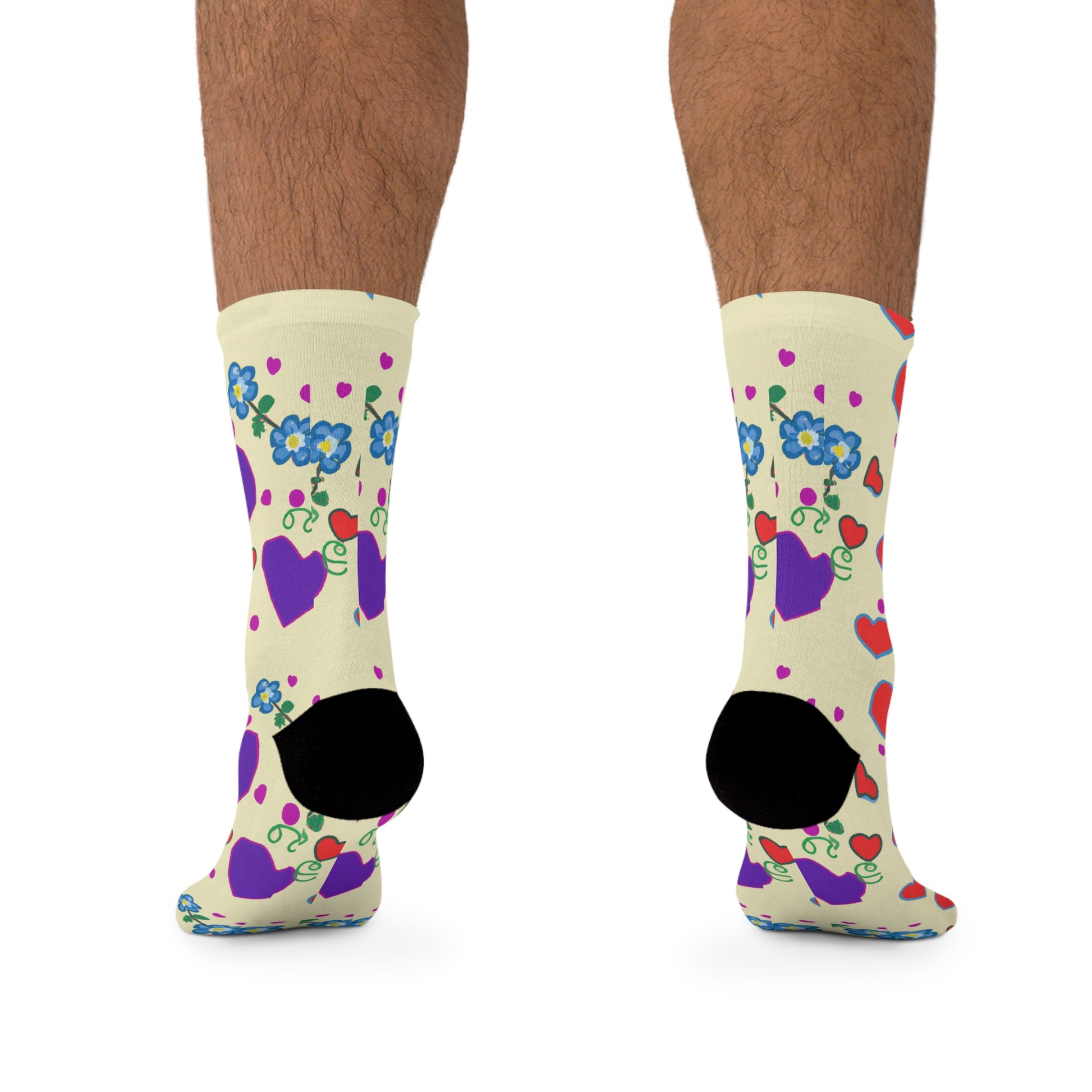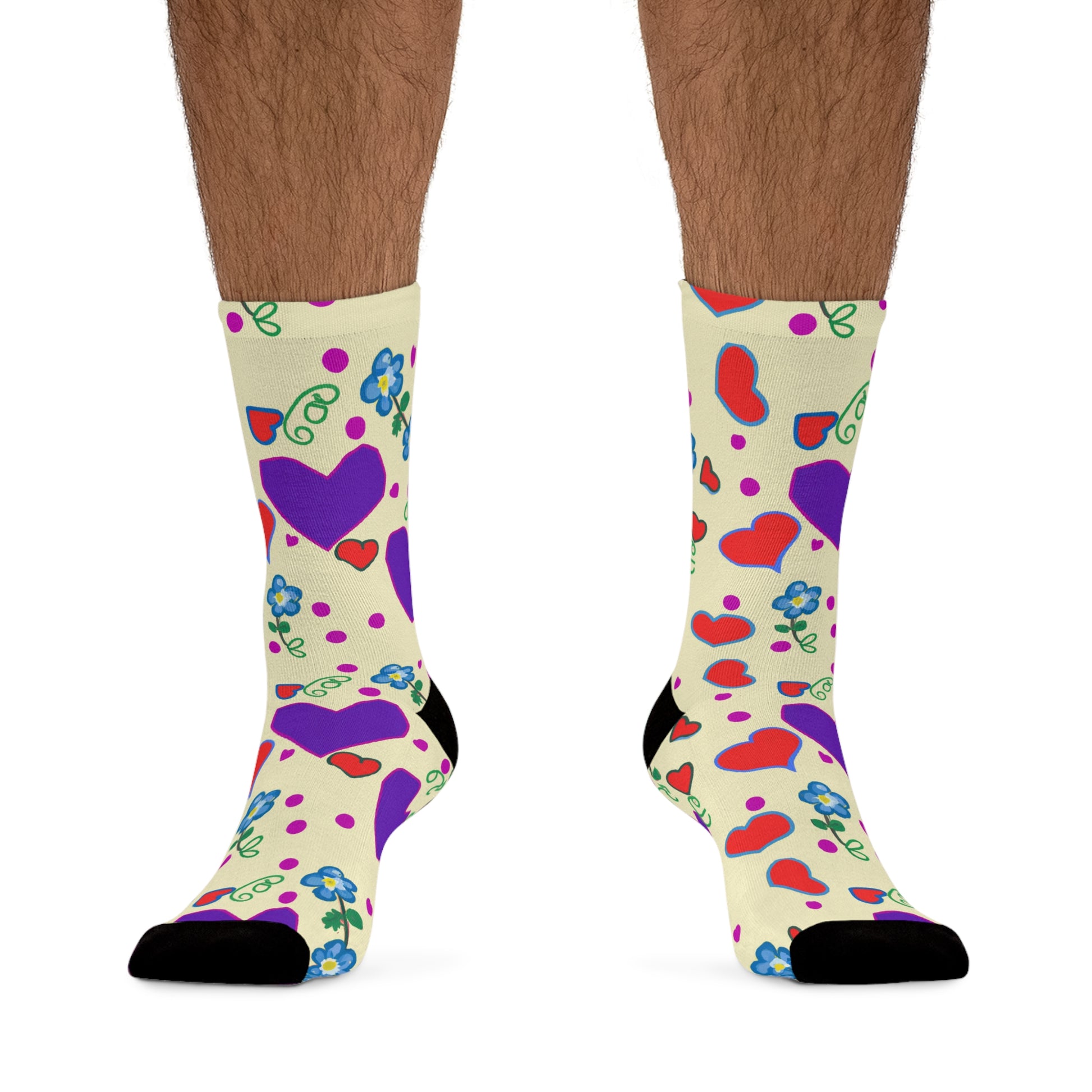 Give Mom the gift of comfort and style this Mother's Day with our Cream Socks adorned with Purple, Pink & Red Hearts. It's the perfect way to show her how much she means to you in a fashionable and eco-friendly manner.