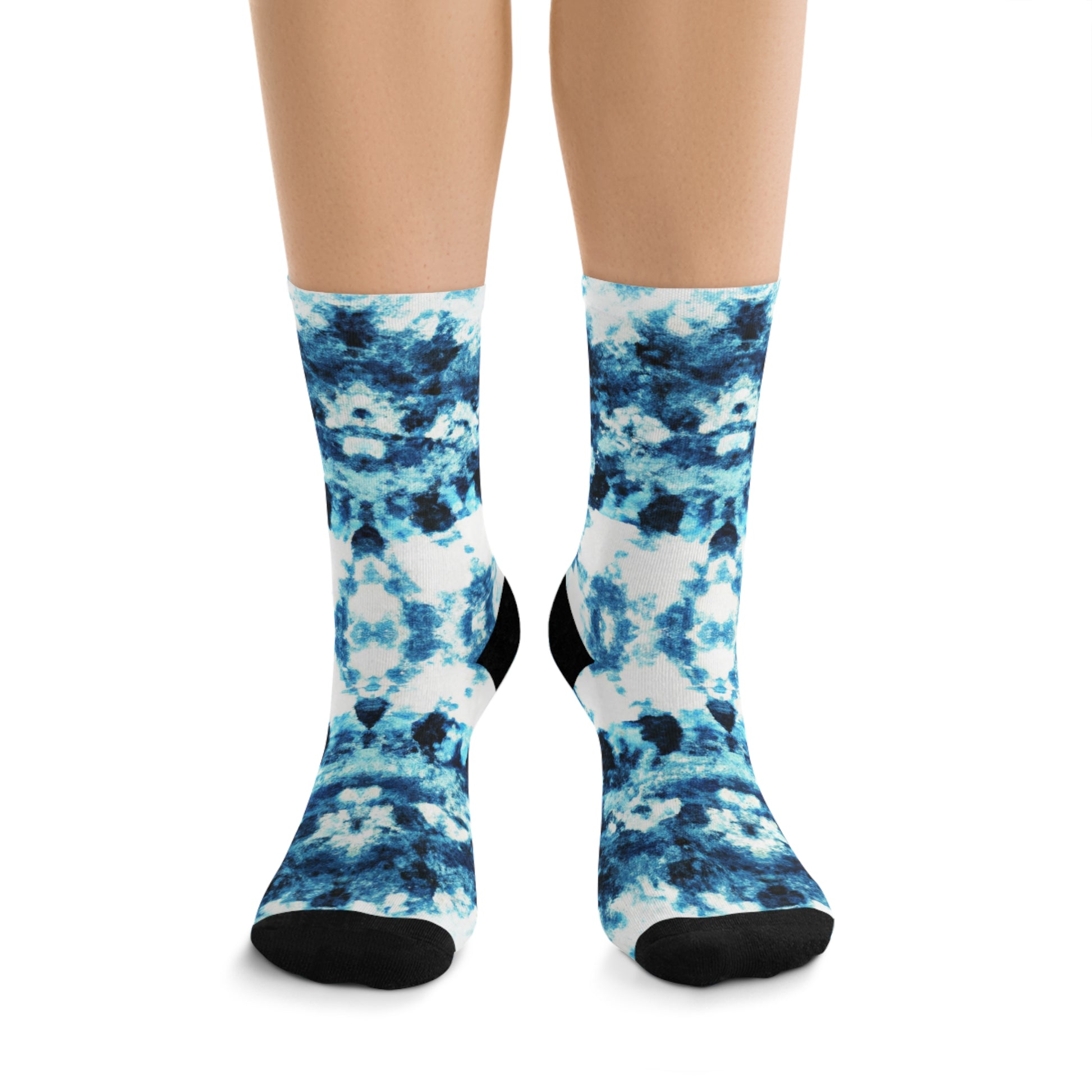 Introducing our newest addition to the sock scene: Blue Tie Dye Bliss Socks, where style meets serenity in every step! Crafted to captivate with their mesmerizing tie-dye pattern in shades of tranquil blue, these socks are a must-have for those who crave both fashion and comfort.