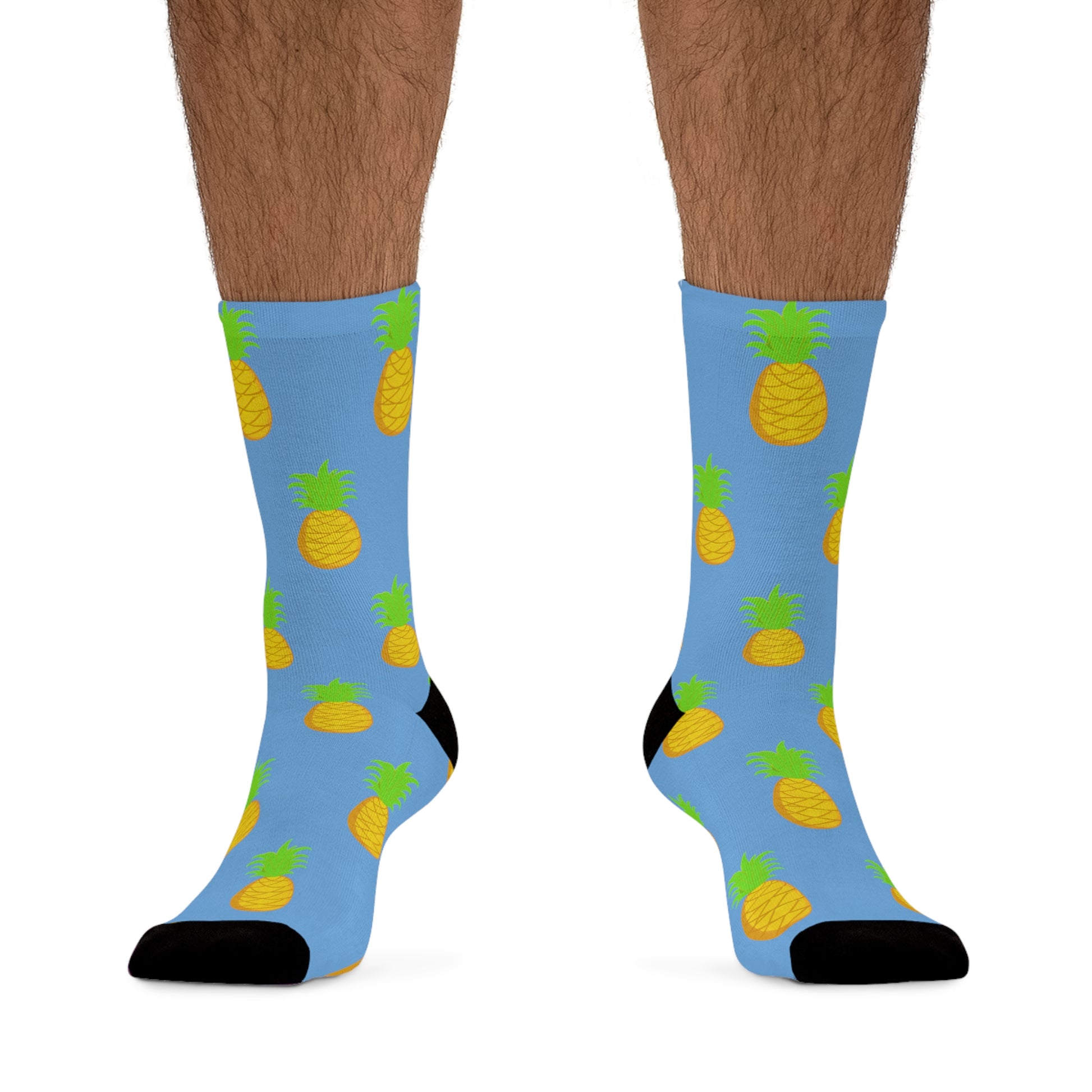 Crafted with meticulous attention to detail, these socks are not only fashionable but also incredibly comfortable. The light blue hue provides a serene backdrop for the cheerful pineapple pattern, creating a look that's both refreshing and eye-catching.