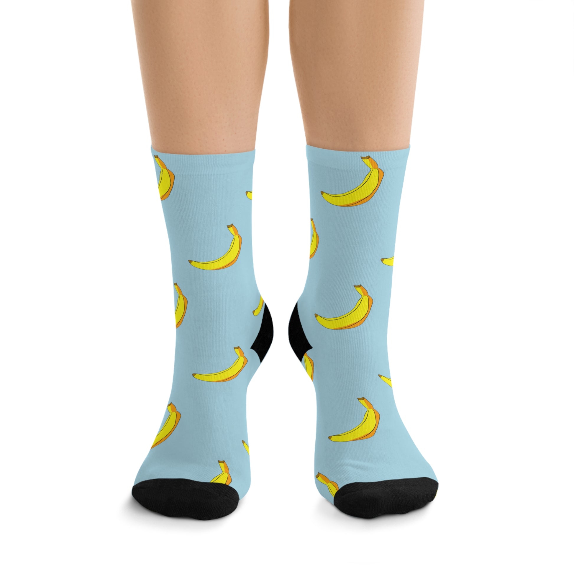 Each pair is adorned with a delightful array of bananas, intricately woven into the fabric with precision and care. Whether you're slipping them on for a casual day out or adding a pop of personality to your work attire, these socks are sure to put a smile on your face.