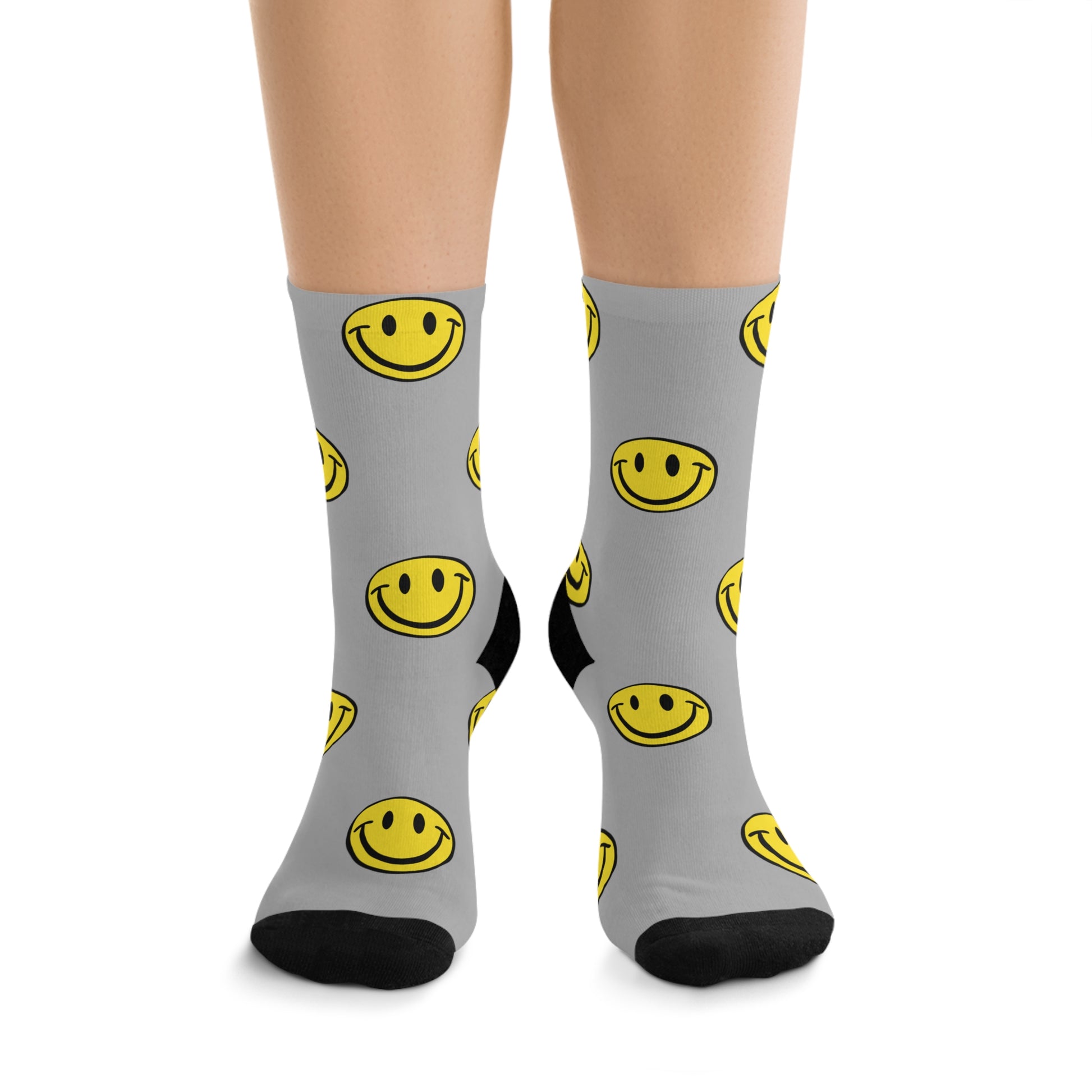 Crafted with meticulous attention to detail, these socks feature a playful pattern of smiley faces scattered across the fabric. Each smiley radiates happiness, adding a pop of color and personality to your ensemble. Whether you're lounging at home or stepping out for a day of fun, these socks are sure to brighten your day.