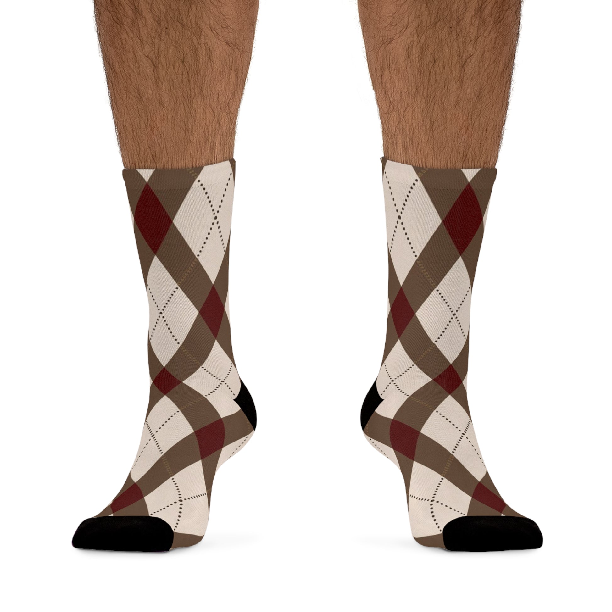 Meticulously crafted, these socks feature the iconic argyle pattern in a rich blend of brown and red hues. The classic diamond-shaped design exudes elegance and refinement, adding a touch of understated luxury to your ensemble.