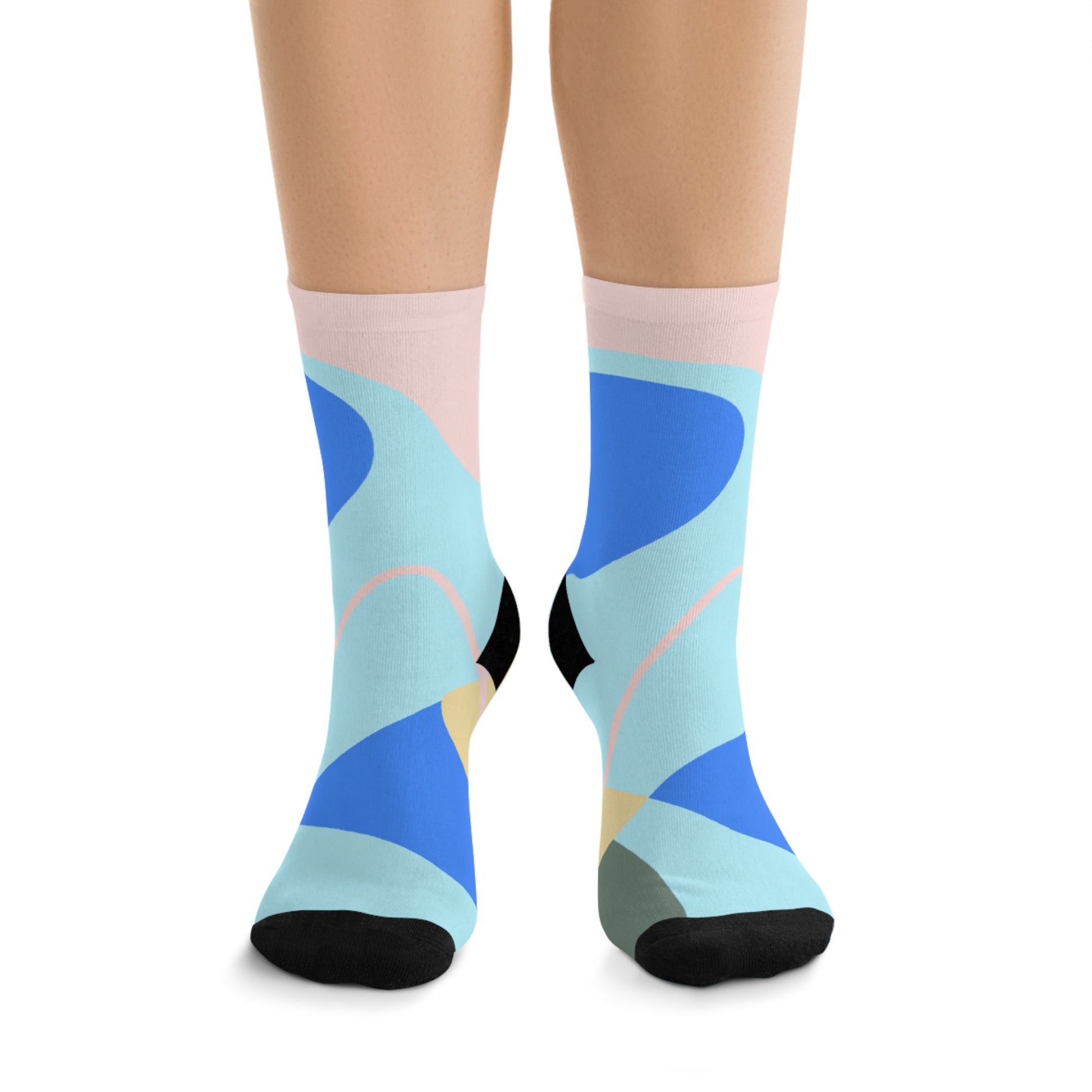 Blue Abstract Socks, Fun Socks, Recycled Poly Socks