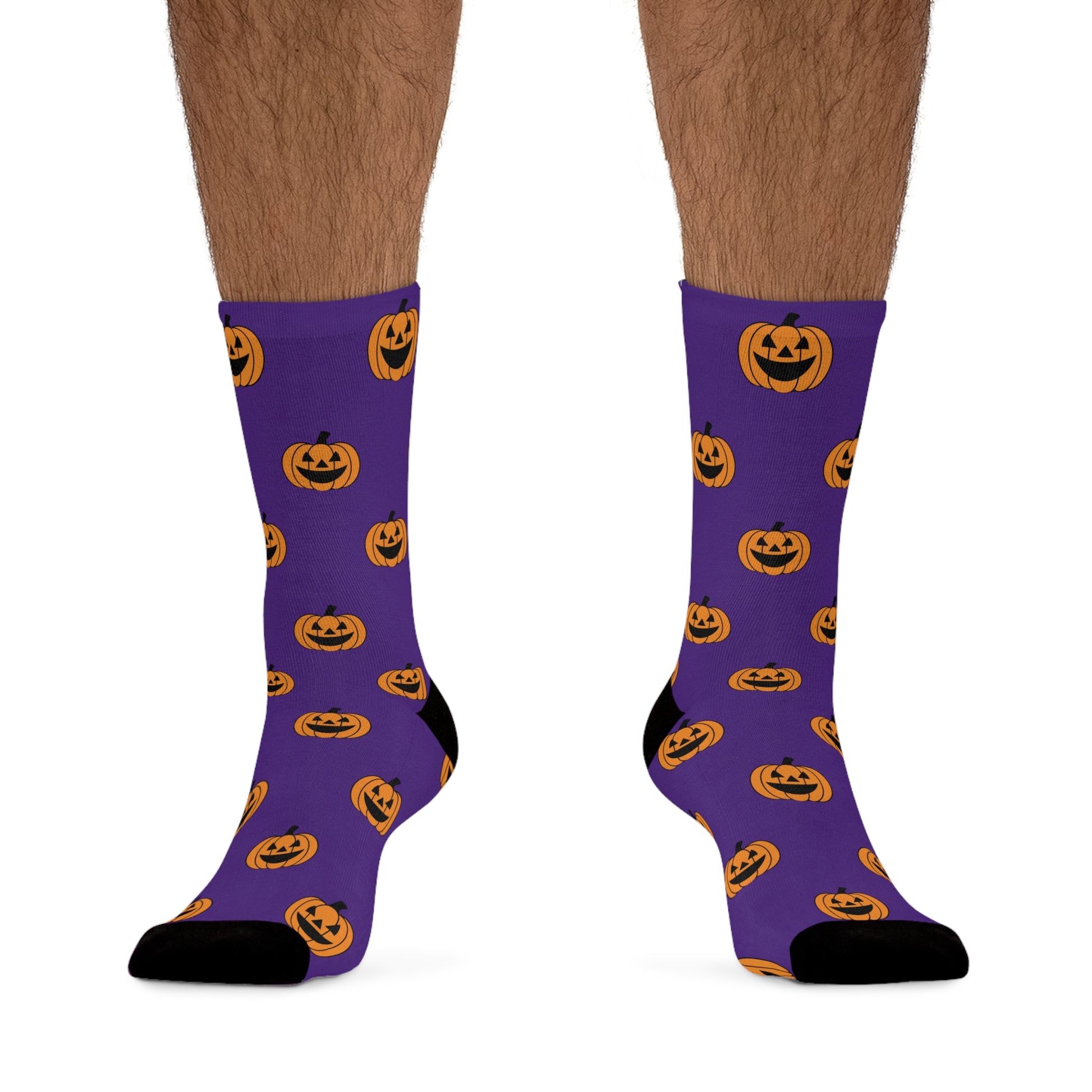 These socks are made using a proprietary blend of yarns specially sourced by Tribe Socks. They are 200 needle knit crew made from 58% Recycled Polyester 22% Nylon 15% Cotton and 5% Elastane. They are a true one size fits most, and are available up to size 12 Men's (U.S.). These socks have an unprecedented amount of stretch with durable print quality.
