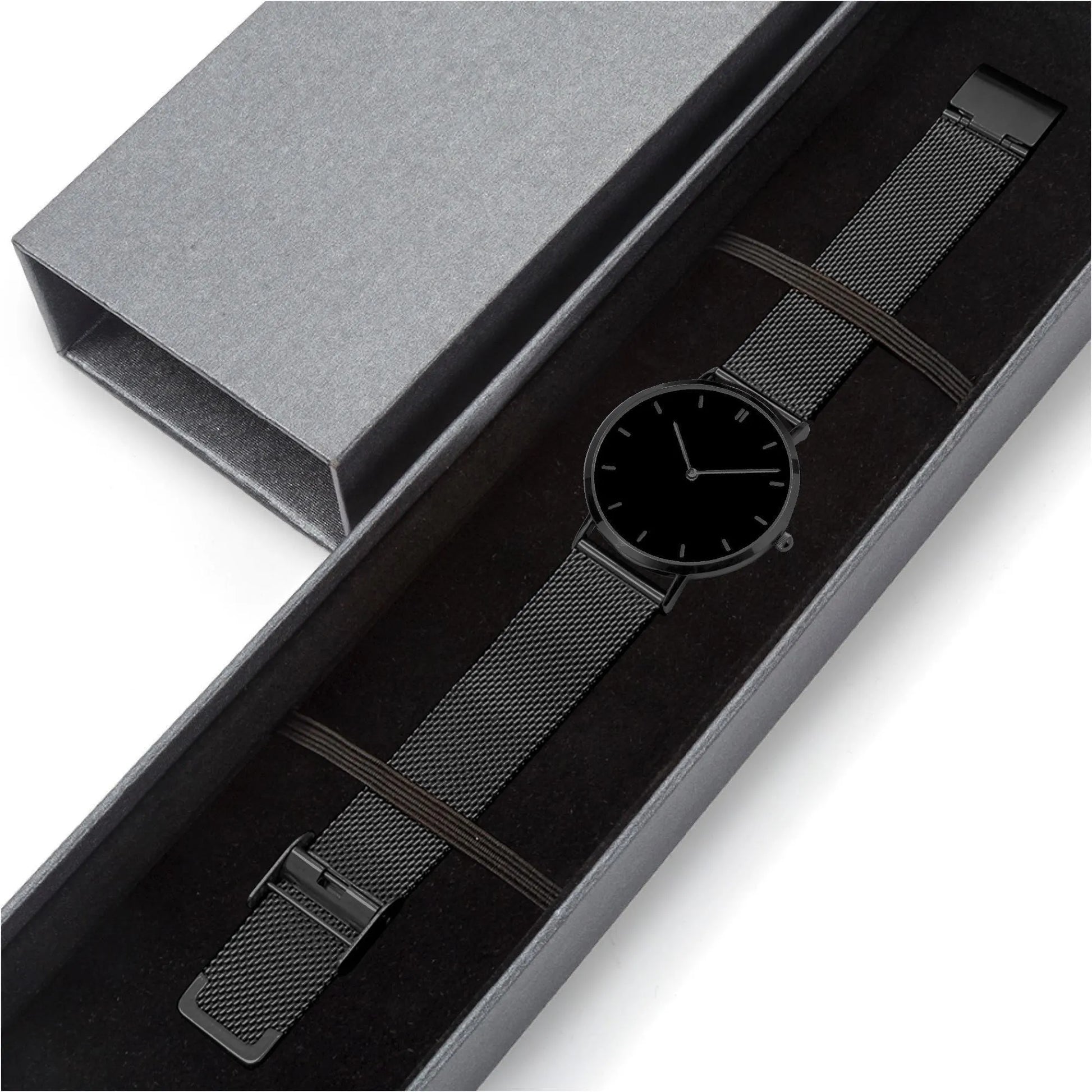 Sleek, striking, and built to impress this custom stainless steel watch features a bold all-black face with clean indicator markers for a minimalist, modern look. Designed for both casual wear and formal flex, its the ultimate statement piece that never goes out of style.