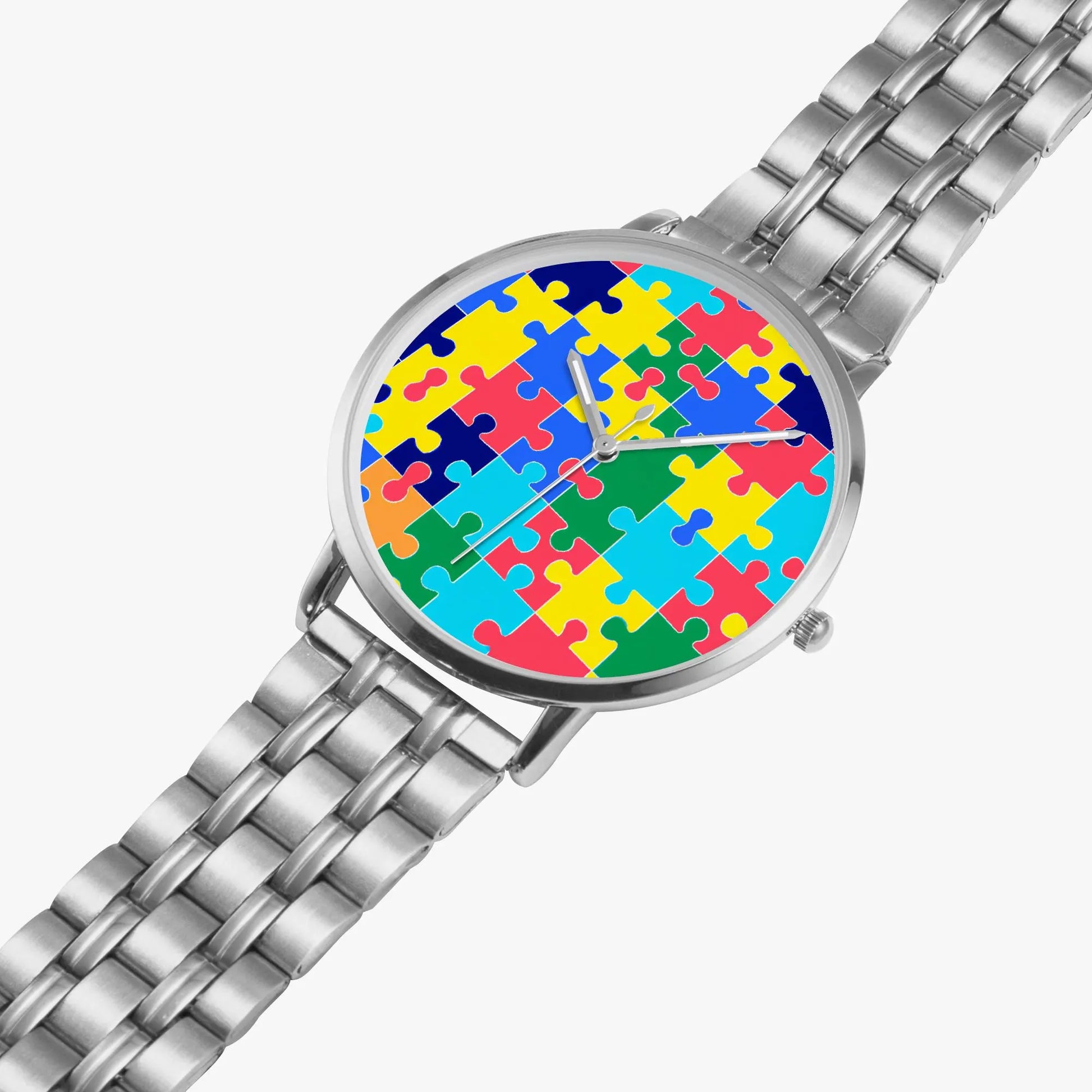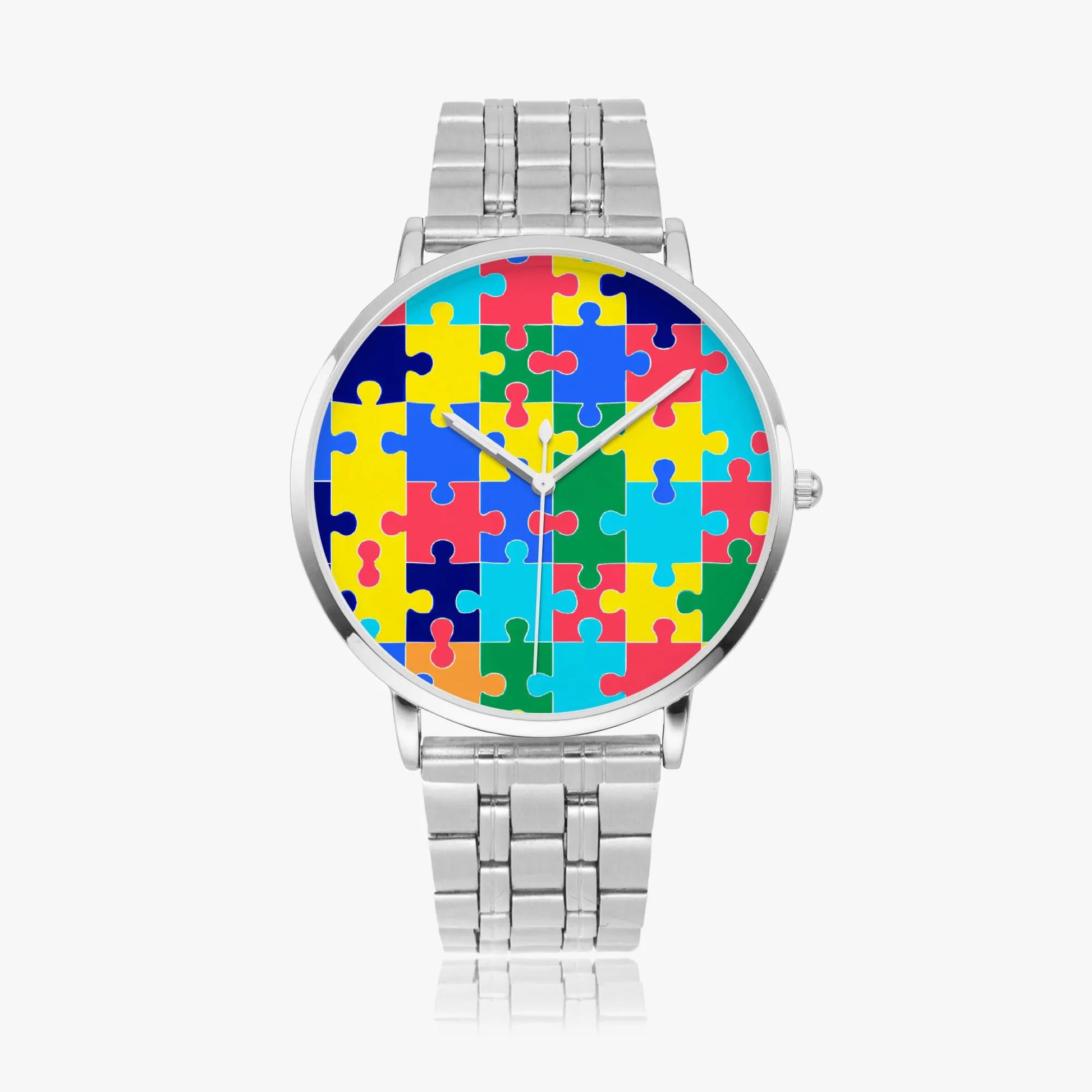 Time to piece it all together. This custom stainless steel watch features a unique jigsaw puzzle design on the face — perfect for puzzle lovers, thinkers, and anyone who knows life’s about finding the right fit. Crafted with a sleek stainless steel band and durable quartz movement, it blends everyday functionality with a hint of playful mystery. Whether you're solving problems or just making a statement, this watch completes the look.