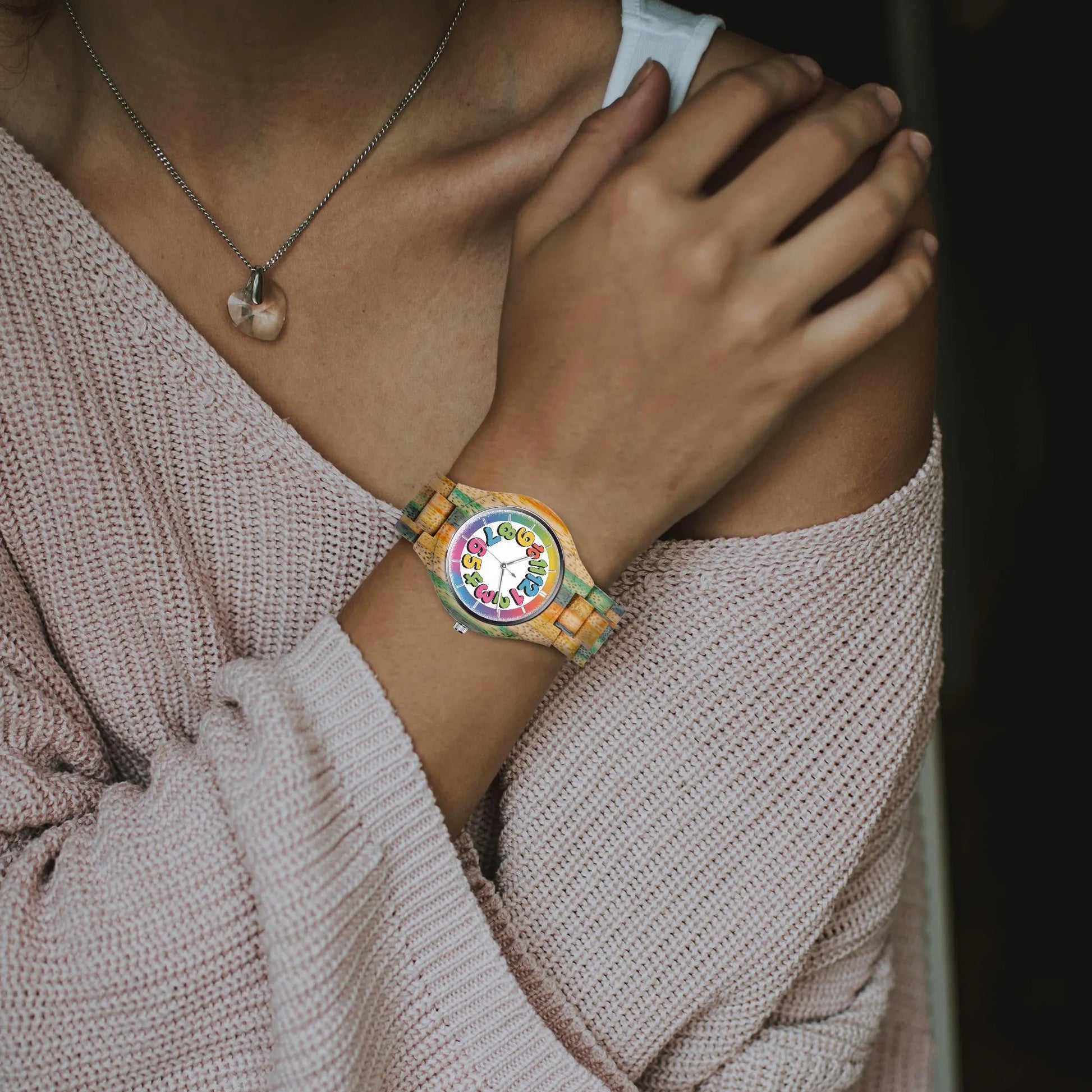 Wooden Cartoon Number Face Watch 45 mm